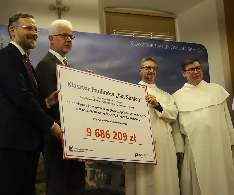 Po wystąpieniach przewodniczącego Społecznego Komitetu Ochrony Zabytków Krakowa i szefa Kancelarii Prezydenta nastąpiło przekazanie symbolicznej promesy na kompleksowy remont wnętrza bazyliki paulinów Na Skałce.
