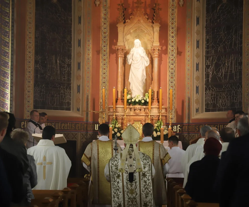 Podczas Mszy św. poświęcił odnowione wnętrze kaplicy Najświętszego Serca Pana Jezusa – m.in. polichromię, witraż św. Jana Pawła II oraz nową ambonę.