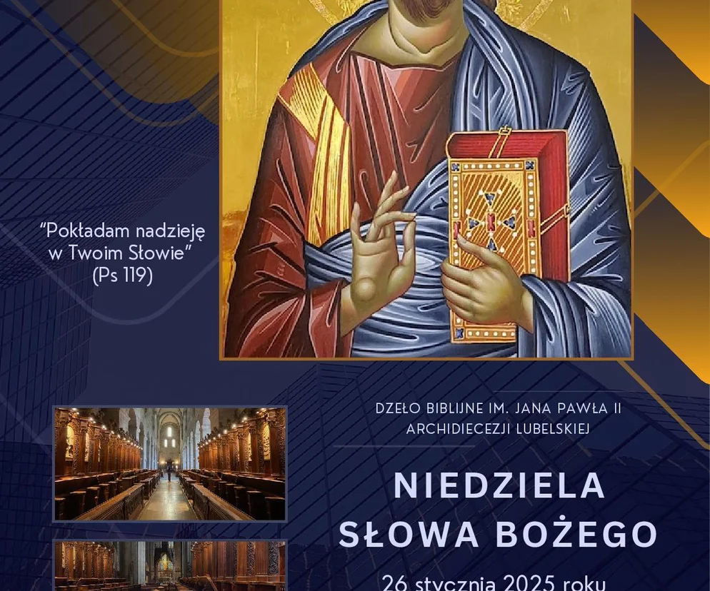 Link do materiałów na Niedzielę Słowa Bożego przygotowane przez Dykasterię ds. Ewangelizacji oraz przez Instytut Nauk Biblijnych KUL: VI Niedziela Słowa Bożego 26 stycznia 2025 r. POMOC LITURGICZNO-DUSZPASTERSKA Pokładam ufność w Twoim Słowie (Ps 110,74)